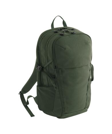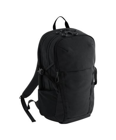 Specification - Cordura polyester fabric for strength and durability. Water-repellent coating, PFAS-free. Zipped main compartment. Internal mesh zipped pocket. Rear padded laptop compartment, compatible up to 16'. Front zipped pocket with two slip pockets. Hydration bladder-compatible. Elasticated side pockets. Padded air mesh back panel. Integrated high-visibility rain cover, 190T polyester. Padded, adjustable air mesh shoulder straps. Multipurpose attachment loops. Compression straps. Grab handle. TearAway label for ease of rebranding. Contains 100% GRS-certified recycled polyester, certified by Control Union CU811033..