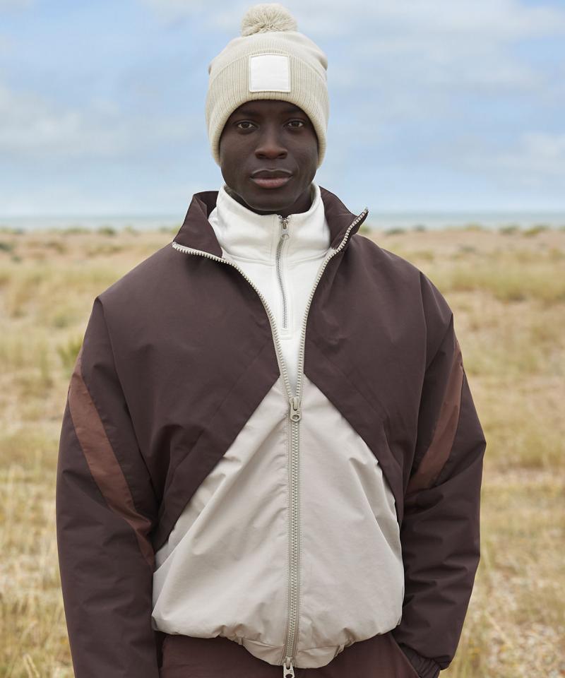 Specification - Contains 100% certified recycled material. Double layer knit. Cotton twill patch for decoration. Self-coloured pom pom. Microfleece lining for comfort and warmth. TearAway label for ease of rebranding..