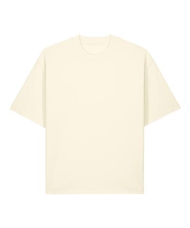 Specification - Unisex heavyweight boxy t-shirt. Oversized fit. Set-in sleeve. 1x1 rib at collar. Inside back neck tape in self-fabric. Blind stitch at sleeve cuff and hem..