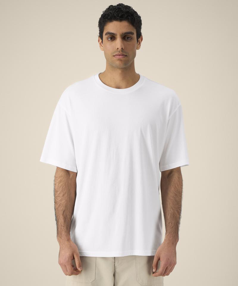Specification - Unisex cotton modal t-shirt. Set-in sleeves. Forwarded shoulder seam. 1x1 rib at neck collar. Self-fabric back neck tape. Twin-needle topstitching at sleeve cuffs and hem. Contains 60% OCS-certified organic cotton, certified by Control Union CB-CUC-1393082. Contains 40% Modal (TENCEL)..