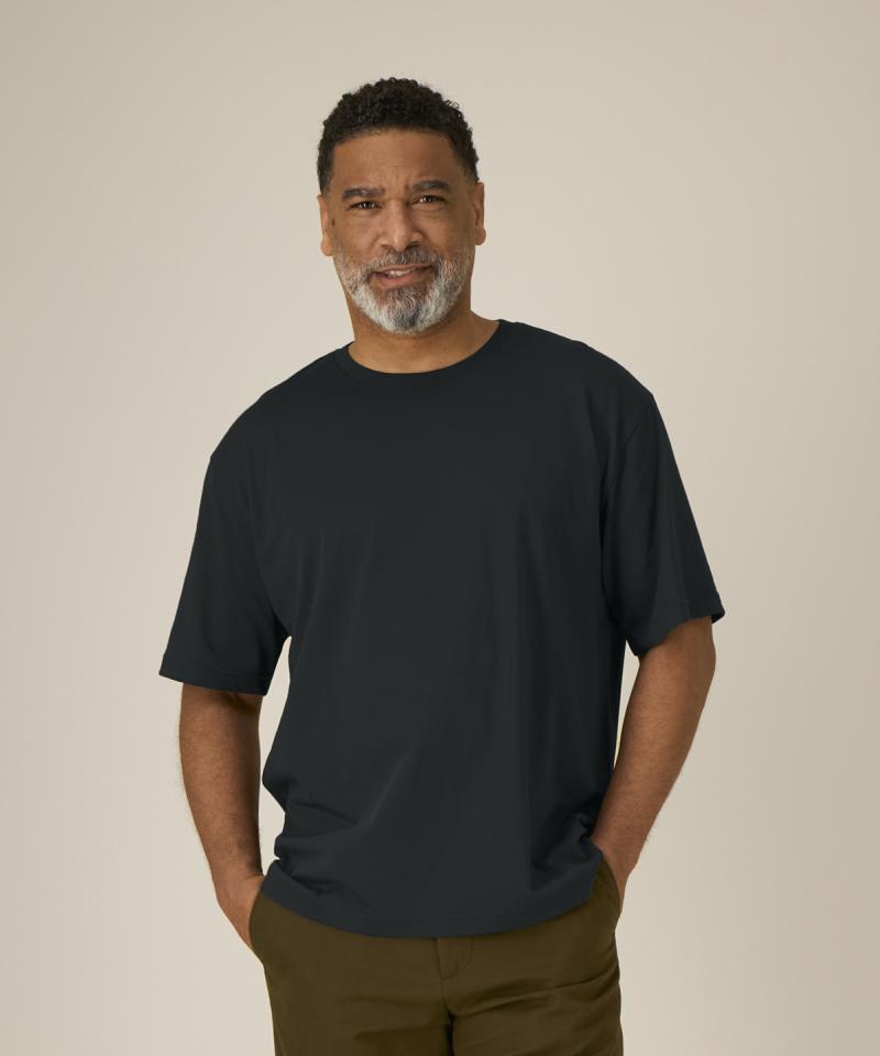 Specification - Iconic mid-light unisex t-shirt. Relaxed fit. Set-in sleeve. 1x1 rib at neck collar. Inside back neck tape in self-fabric. Twin-needle topstitch at sleeve cuff and hem..