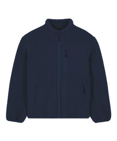 Premium unisex Sherpa jacket in 100% recycled polyester. Relaxed fit, 450gsm. Fully bonded inside fleece layer with an anti-pill finish. Contrast softshell inserts..
