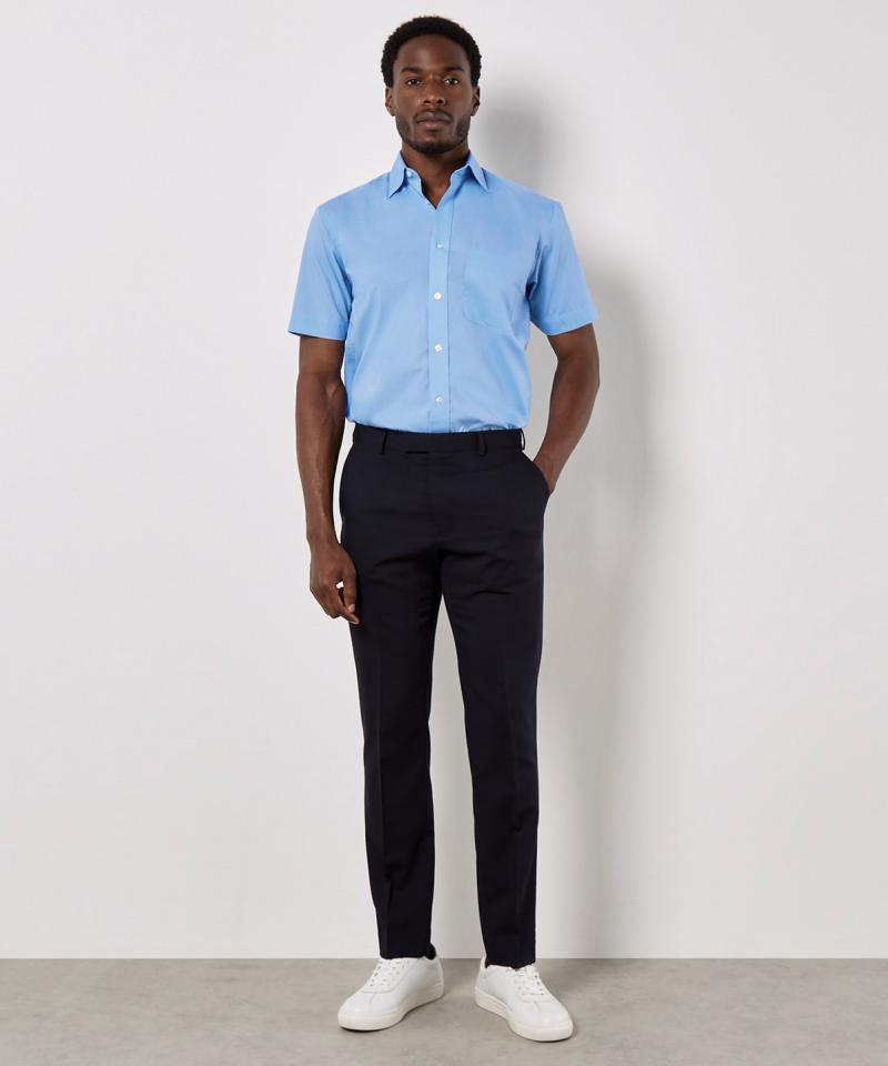 The mens short sleeve business shirt is ideal for a range of corporate environments. Produced with durable cotton rich poplin and enhanced with an easy-iron finish..