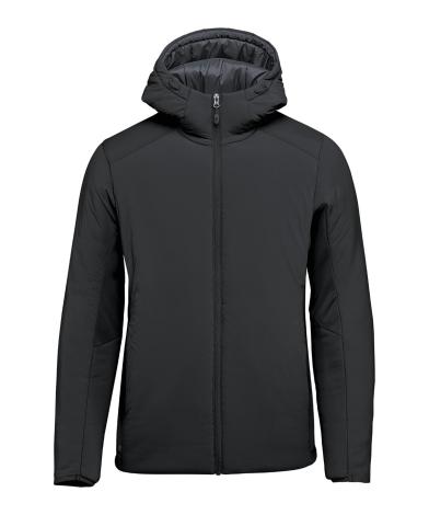 Specification - Stormtech Thermal Shell insulation. Durable water-repellent finish. High-performance stretch woven outer shell. Full-coverage attached hood with easy-lock adjustment. High-density brushed-back knit panels. Articulated elbows. Underarm gussets. Zipped on-seam handwarmer pockets. Single-hand hem adjustment. Partially elasticised cuffs. Contoured seaming. Contains recycled materials..