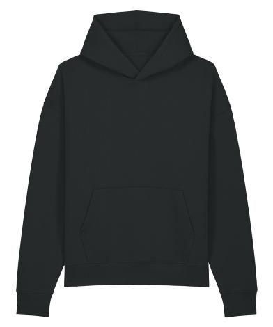 A trendy relaxed fit hoodie in 280gsm brushed fabric, without drawcord for a minimalist look perfect for music merch, customisation and branding..