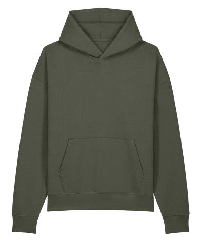 Specification - Iconic mid-light unisex hoodie sweatshirt. Relaxed fit. Set-in sleeve. Self-fabric lined hood. 1x1 rib at sleeve cuff and hem. Kangaroo pocket. Inside back neck herringbone tape. Half moon at back neck..