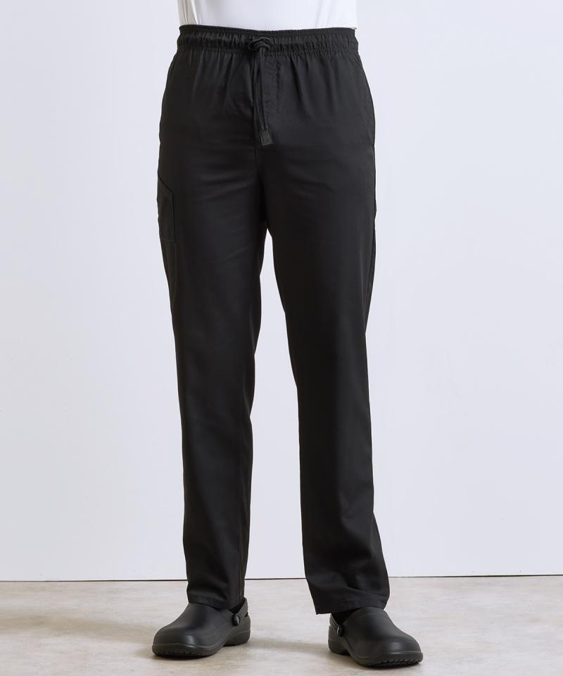 A great solution for chef and the team, these trousers offer a more fitted style on the leg but still remain comfortable for long shifts during service. Features a handy pocket on the right leg and a left rear patch pocket. Fastens with zip fly and draw cord and is finished with an elasticated waist..