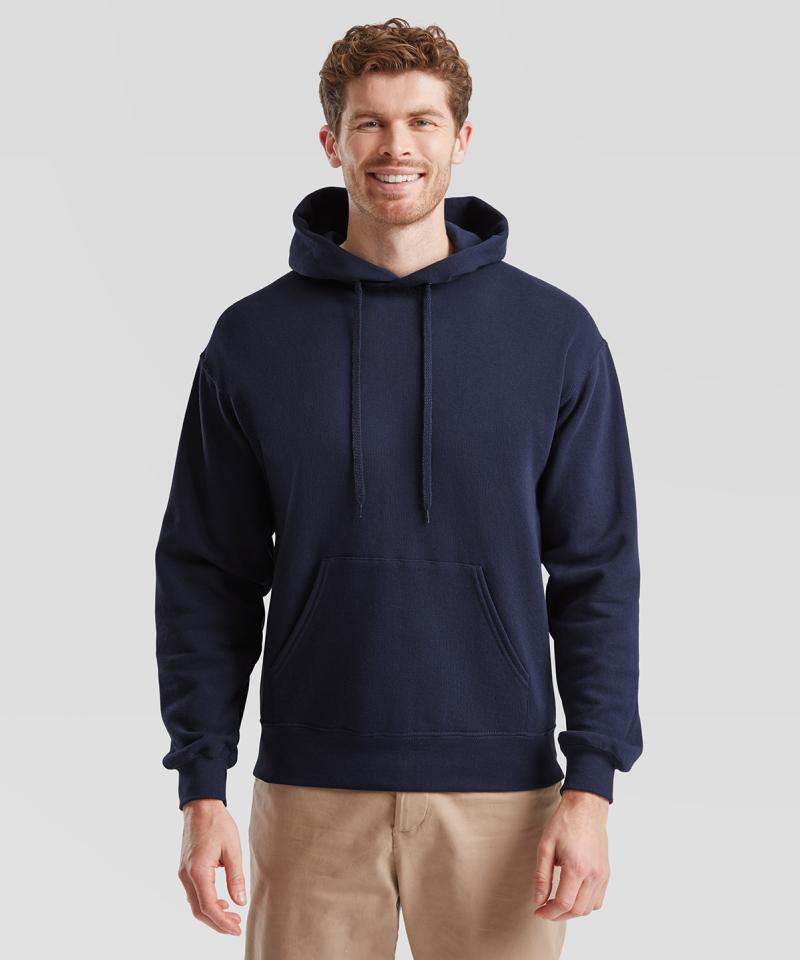 Specification - Set-in-sleeves. Double fabric hood with self-coloured drawcord, front pouch pocket, ribbed hem and cuffs. Twin needle stitching detail to armholes, hems and cuffs. Waist and cuff rib in cotton/Lycra for shape retention. Also available in kids..