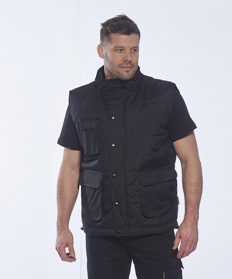 Specification - This bodywarmer offers an extra layer of warmth and protects the wearer in wet weather. The classic style combines hand warmer pockets, patch pockets and an external mobile phone pocket to make an excellent outdoor garment..