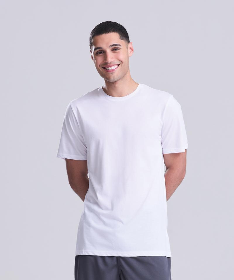 Specification - Active fit. Set-in sleeve design. Cotton polyester blended performance fabric. Self-fabric taped back neck. Twin-needle stitching detail. Self-fabric crew neck. Simple tear-out label makes it perfect for rebranding. UPF 40+ TBC. Inherent stretch fabric properties..