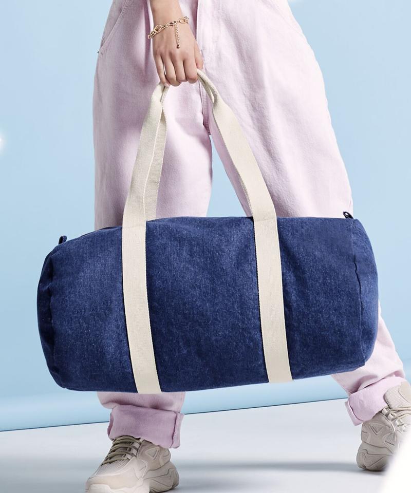 Carried by hand or over the shoulder, the denim barrel bag is a popular style contender. Available in a soft-touch denim blend, this relaxed barrel-shape bag makes the perfect gym kit holdall or weekend bag..
