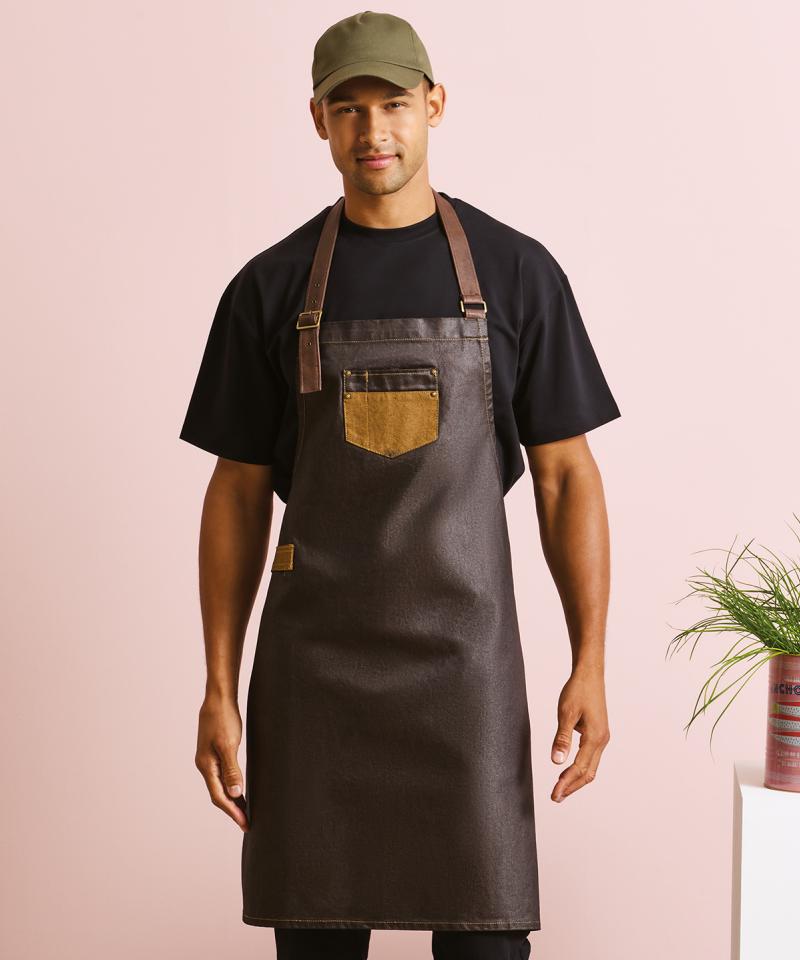 Division Waxed-look Denim Bib Apron With Faux Leather