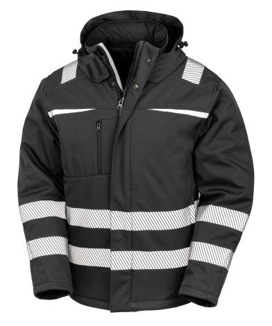 The new generation in safety wear! This 3-layer performance dynamic softshell brings style, fit and comfort. The durable water-repellent fabrics, breathability, inner storm cuffs and hood all add to the windproof protection whilst the modern printed chevron design brings the EN ISO 20471 Class 2 visibility that allow this beautiful jacket to stand out from the crowd!.