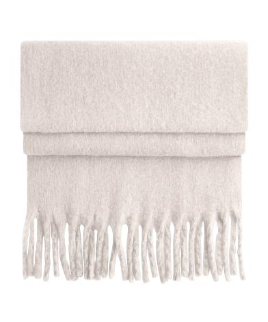 Specification - Contains 100% certified recycled polyester. Luxury soft-touch fabric. Chunky, wrap-around design. Oversized style. Tassel trim. TearAway adhesive fabric label..