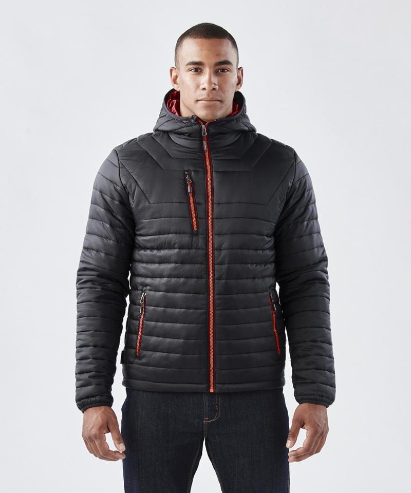 Specification - STORMTECH D/W/R durable water-resistant outer shell. Quilted body with ultra soft liner. Centre front vislon zipper with contrast zipper teeth. Elasticized cuffs. Attached hood. Adjustable hem. Set-in sleeves. Brushed tricot hand warmer pockets. Zippered pockets with garages. Chin saver. Internal full-length storm flap. Inside pocket. Internal media port. Embroidery access..