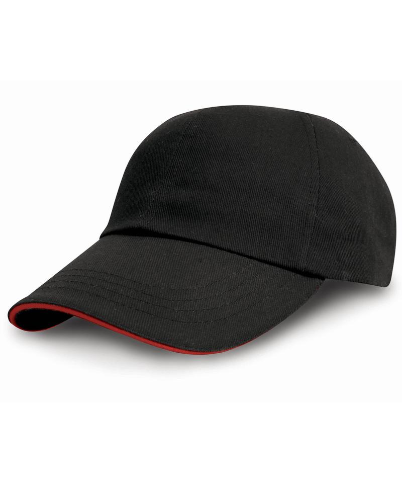Specification - 6 panel. Low profile. Unsupported front panels. Suitable for embroidery and print. Pre-curved peak with 4 stitched lines. Stitched eyelets. Contrasting colour sandwich peak. Fabric size adjuster with antique brass buckle. Decoration Guidelines: Decorating methods: Embroidery & Transfer print Decorators access point: Open..
