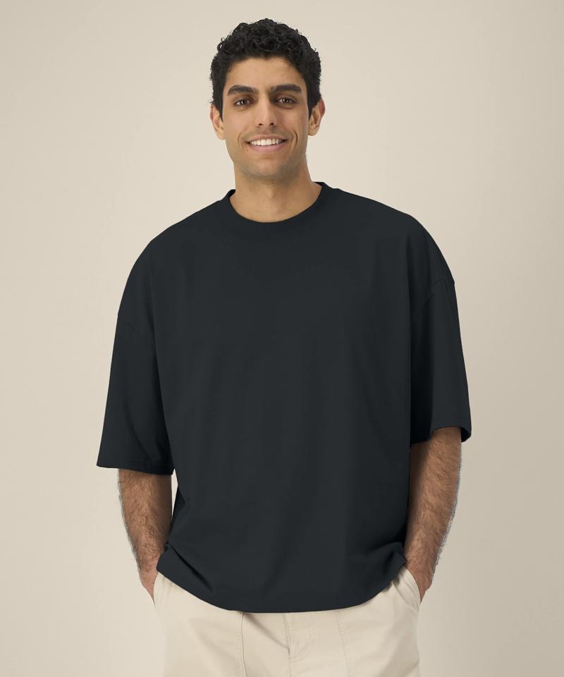 Specification - Unisex recycled cotton boxy t-shirt. Set-in sleeves. Forwarded shoulder seam. 1x1 rib at neck collar. Self-fabric back neck tape. Twin-needle topstitching at sleeve cuffs and hem.Contains 50% GRS-certified recycled cotton and 50% OCS-certified organic cotton, certified by Control Union CB-CUC-1393082..