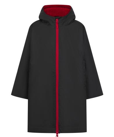 The ultimate team robe is made in a water resistant fabric with a cosy sherpa fleece lining and three-piece hood. The roomy fit with double-ended full front zip allows wearers to keep warm and get changed underneath the robe. Perfect for wild swimming or wearing on team sidelines. Zipped pockets with fleece lining keep hands warm with multiple inner pockets for keeping belongings safe. Topped off with a large embroidery zip for access to directly decorate..