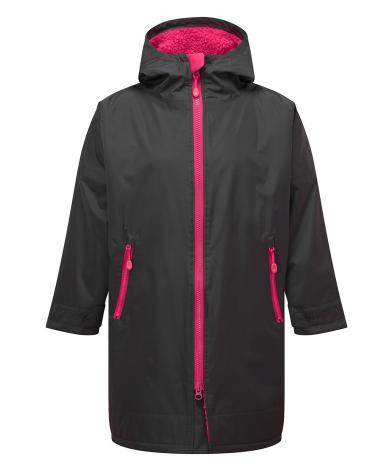 Kids TriDri All-seasons Waterproof Changing Robe In Charcoal/Hot Pink