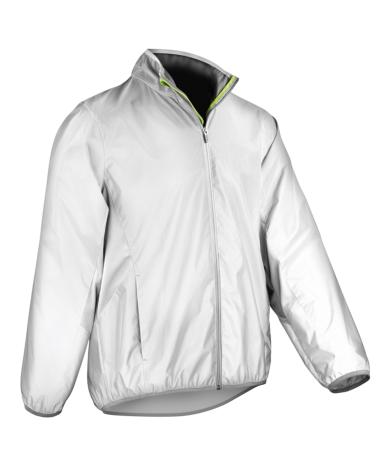 Luxurious highly visible sports jacket with 'ghost' effect 360 degree luminescence for optional roadside awareness. Windproof and showerproof. EN ISO20471:2013 CLASS 2..