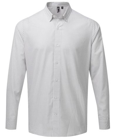 Specification - Yarn dyed fabric creating a gingham pattern. Long sleeve with single button cuff and sleeve guard. Narrow soft collar with button-down options on the underside. Semi fitted. Easycare fabric..
