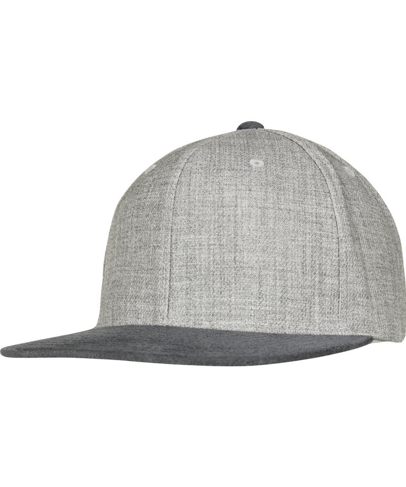 Specification - Melange velour snapback. Retro style. Mottled outer fabric. Soft-contrasted, flat visor. Integrated snapback closure..