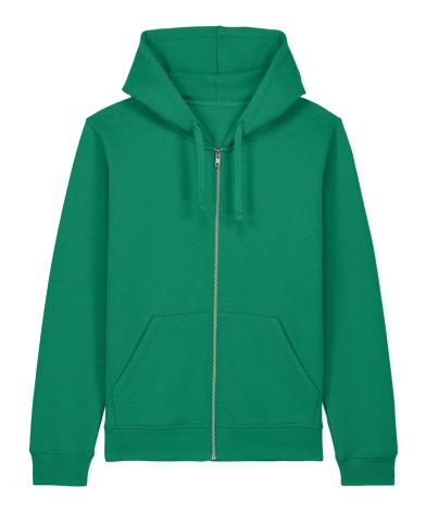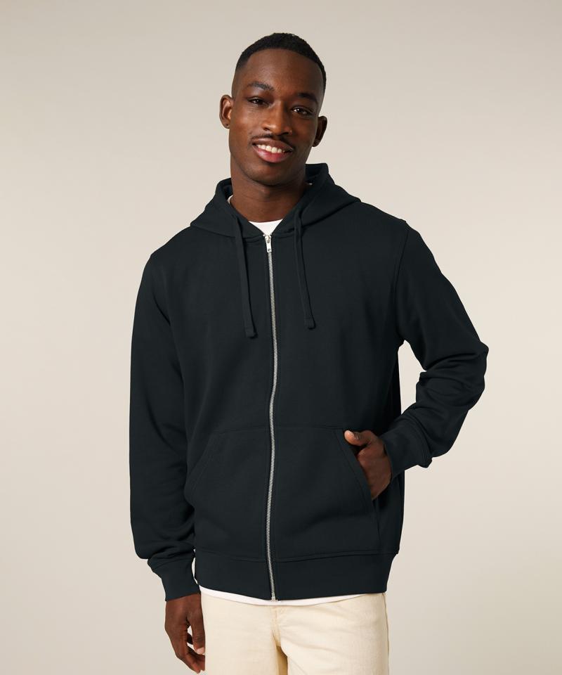 Premium, unisex, mid-light, zip-through hoodie sweatshirt in 280gsm brushed 85% organic cotton and 15% recycled polyester. Medium fit. Excellent printability..