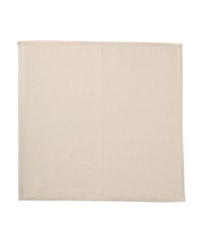 Specification - Napkin. Hemmed edges. Packed flat ready for printing. Certified 200gsm organic cotton..