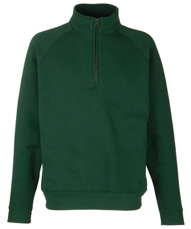 Available in a selection of colours with a covered metal zip for enhanced printability, Fruits Premium zip neck sweat is ideal for all kinds of garment decoration. Details include a single Jersey back neck tape for comfort and cotton/elastane waist and cuff ribs and a cadet collar for added warmth..