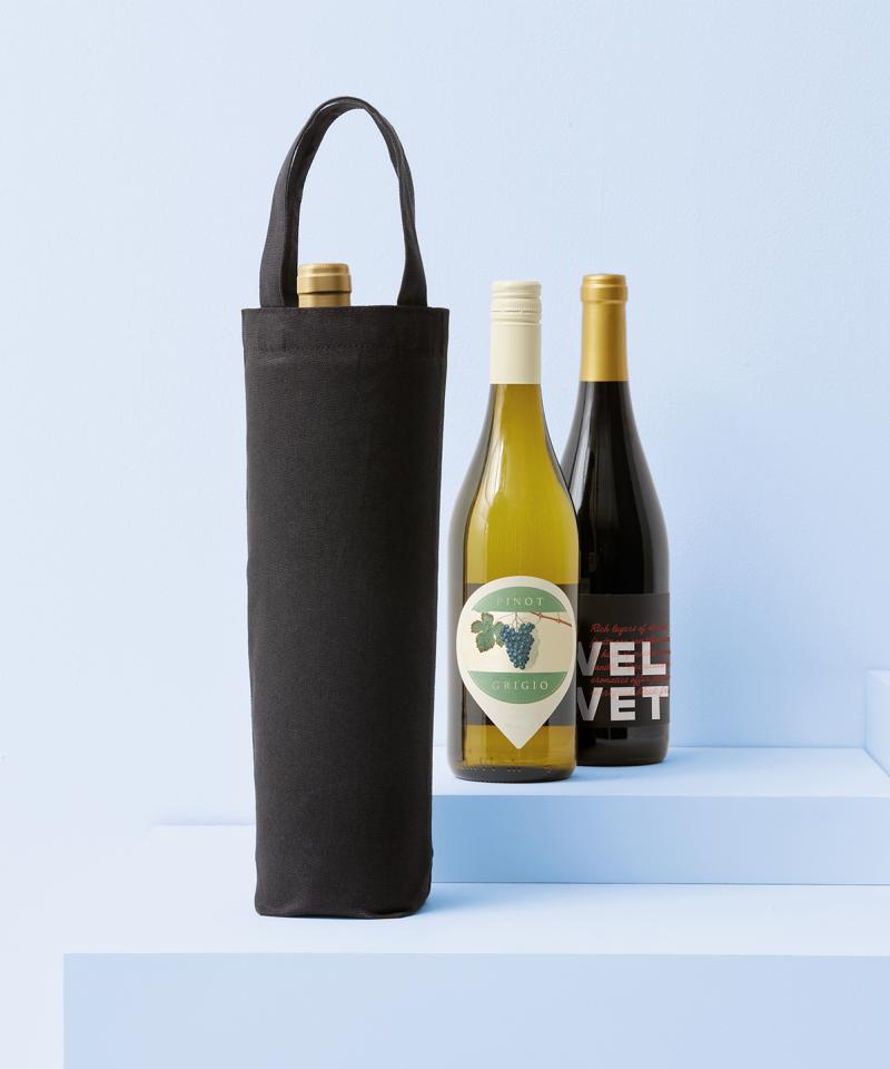 This premium bottle bag makes light work of carrying drinks and refreshments. Made from 100% recycled cotton canvas, with short loop handles, its designed to hold bottles of up to 1.5 litres in capacity. Available in a choice of black or natural shades that can be personalised with your own design..