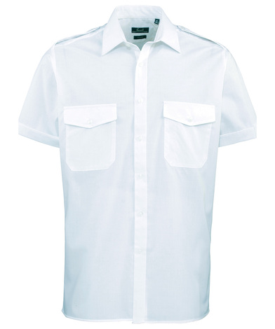 A men's short sleeved pilot/security shirt with a stiffened collar and tabs for epaulettes on shoulders for those who need a more authoritative approach to their workwear..