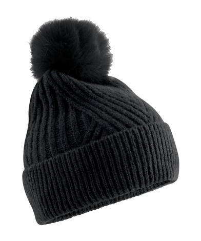 Specification - Sumptuous heavy ribbed knit. Soft-touch fabric. Retro styling. Luxury faux fur pom pom. Cuffed design for optimal decoration. TearAway label for easy rebranding..