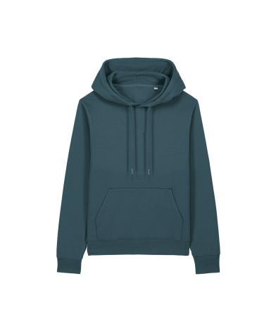 Specification - Womens recycled cotton hoodie. Set-in sleeves. Double-layered hood in self-fabric. Round drawcords in matching colour with closed-end metal tipping. Embroidered eyelets. Twin-needle topstitching on seams at sleeve cuffs and hem. 1x1 rib at sleeve cuffs and hem. Kangaroo pocket. Inside herringbone back neck tape. Self-fabric half-moon at the back neck. Contains 50% GRS-certified recycled cotton and 50% OCS-certified organic cotton, certified by Control Union CB-CUC-1393082..