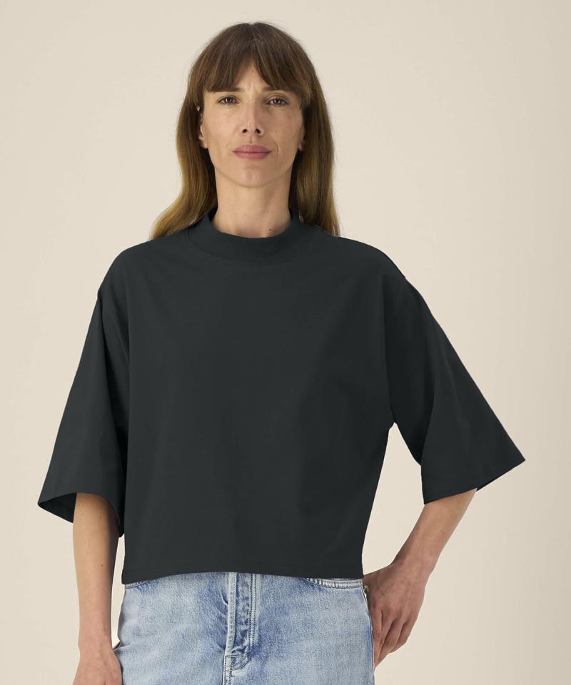 The Stella Raya is a womens cropped t-shirt made from a soft recycled cotton blend. With its trendy boxy fit, it offers a comfortable feel and structured look. Set-in sleeves and a 1x1 rib collar, plus twin-needle topstitching at the cuffs and hem, ensure durability and shape. Lightweight and breathable, this recycled cotton t-shirt is ideal for fashion-forward collections, lifestyle branding and music merch. Designed for decoration, it provides a smooth surface for standout print or embroidery a stylish, sustainable choice for bold customisation..