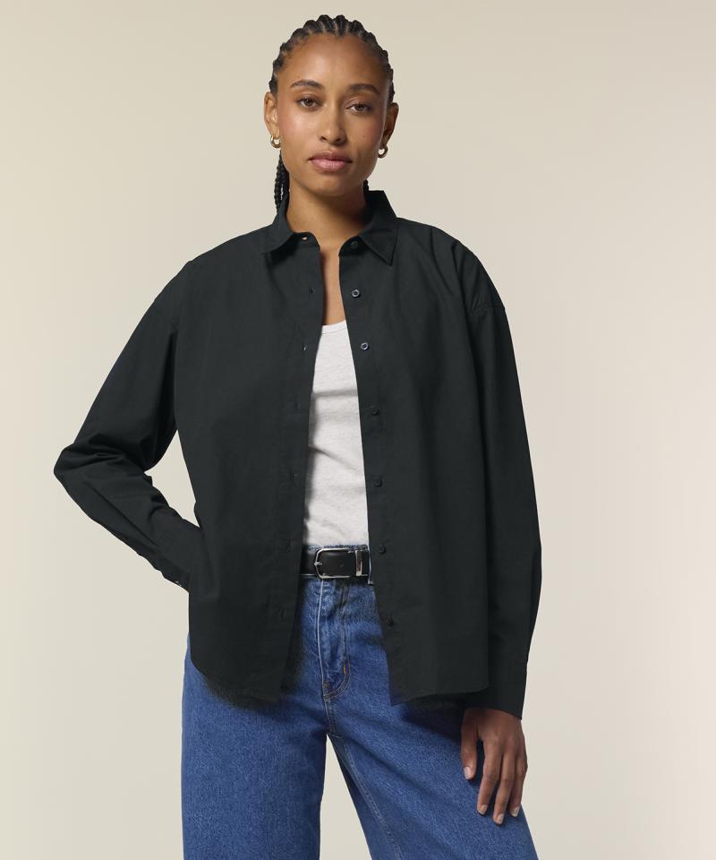 The Stella Styler shirt, for women, provides a relaxed fit in tight-weave poplin, offering a trendy retail-inspired fit. Made from premium 100% organic cotton, this crisp modern shirt is perfect for anyone looking for eco-friendly fashion that doesnt compromise on style. At 130gsm, the Stella Styler is lightweight and breathable, yet the tightness of the weave makes it strong enough for any kind of decoration, from printing to embroidery. Dropped shoulders and a box pleat at the back offer a flattering, feminine fit, while details like a two-button cuff add a premium look and feel..