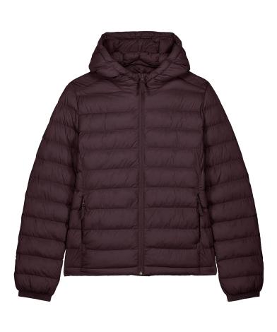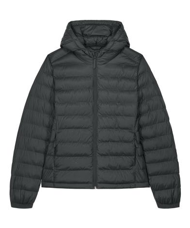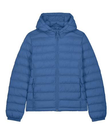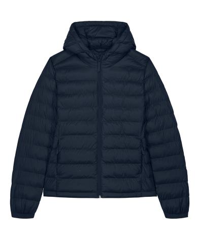 Specification - Womens padded jacket. Fitted. Set-in sleeve. High collar with grown-on hood. Hood opening and bottom hem have an adjustable plastic stopper and elastic cord. Reverse nylon zip at centre front. Zipped welt pockets with extra grosgrain puller. Fully quilted. Side panels for a better shape. Self-fabric elasticated cuff. Inside seams with binding finish. Bottom hem has an adjustable plastic stopper and elastic cord..