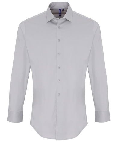 Stretch Fit Cotton Poplin Long Sleeve Shirt In Silver