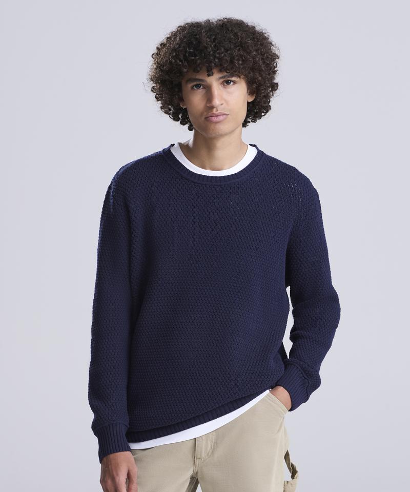 Working towards a more sustainable planet, the Taroko sweater is made from using 70% regenerated cotton waste and 30% recycled polyester. This stylish sweater features crew neck, ribbed cuffs and hem with a seed stitch for a truly unique layer. Waffle knit and fashion fit..