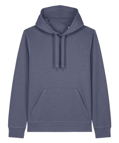 Specification - Essential unisex hoodie sweatshirt in medium fit with set-in sleeve. Self-fabric lined hood. Flat drawcords in matching body colour. Stitched buttonhole eyelets. Inside herringbone back neck tape. Self-fabric half moon at back neck.1x1 rib at sleeve hem and bottom hem. Flatlock topstitch on all seams. Kangaroo pocket with flatlock topstitch..