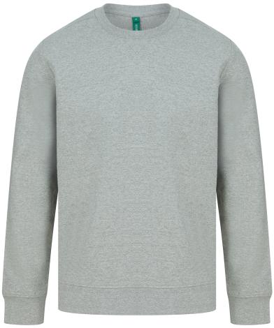 Specification - Fabric using recycled materials. Regenerated cotton mixed with recycled polyester. Brush back fleece. Set-in sleeves. Ribbed cuffs and hemline. V insert at neckline. Back neck tape. Regular fit. Henbury cut-out label for easy rebranding..