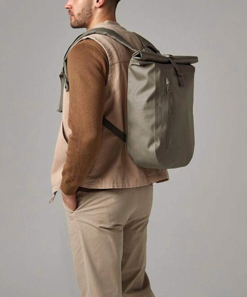 Delivering all the sleek style benefits of a relaxed roll-top backpack, with the addition of waterproof PU-coated fabric, this is where fashion meets function. This is a must for those who commute on foot or by bike, complete with a waterproof main compartment, so things like technology and paperwork stay dry and protected, whatever the weather. Also available in a larger version (QS575), this streamlined bag offers a more compact silhouette for practical, contemporary styling..