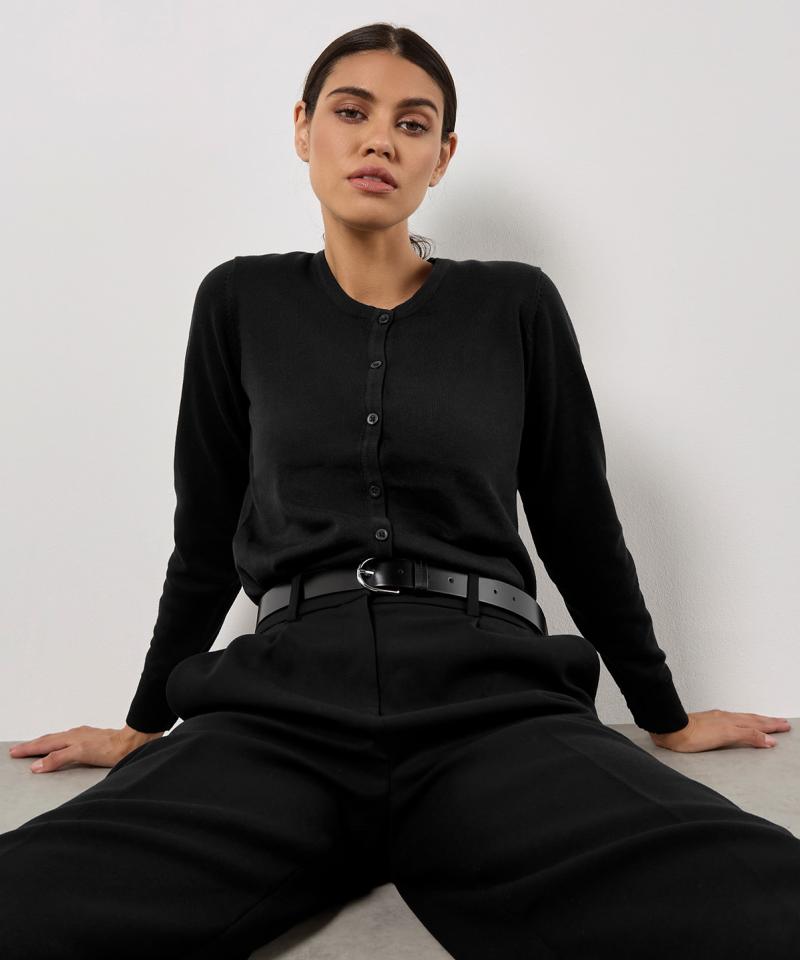 Women's Arundel Crew Neck Cardigan Long Sleeve (classic Fit) In Black