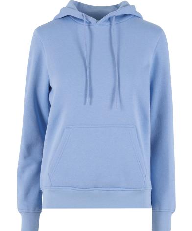 Specification - Classic cut and comfortable basic hooded sweatshirt for women. Hood, kangaroo pocket and wide cuffs on sleeves and hem provide the necessary comfort. The hooded sweatshirt is perfectly suited to be refined and can be easily customised..