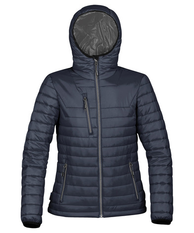 Specification - STORMTECH D/W/R durable water-resistant outer shell. Quilted body with ultra soft liner. Centre front vislon zipper with contrast zipper teeth. Elasticized cuffs. Attached hood. Adjustable hem. Set-in sleeves. Brushed tricot hand warmer pockets. Zippered pockets with garages. Chin saver. Internal full-length storm flap. Inside pocket. Internal media port. Embroidery access..