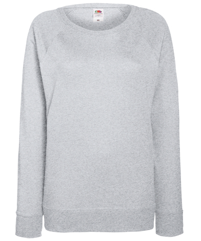 Made from lightweight unbrushed fleece and featuring shaped side seams for a feminine fit, the women's lightweight raglan sweat is perfect for layering, with a 100% cotton face promising perfect printing and embroidery results. Including raglan sleeves, cotton/Lycra neck, waist and cuff ribs, Fruits women's lightweight raglan sweat is available in a wide range of colours..