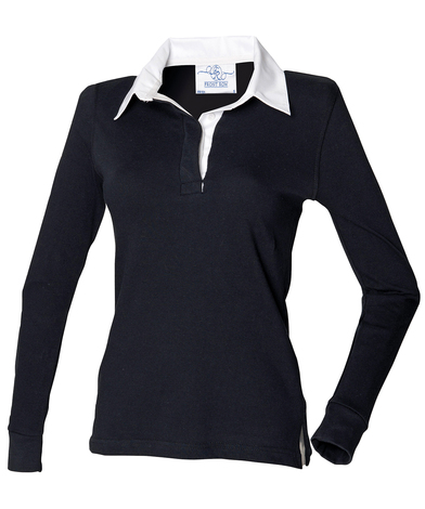 Women's Long Sleeve Plain Rugby Shirt In Navy/White
