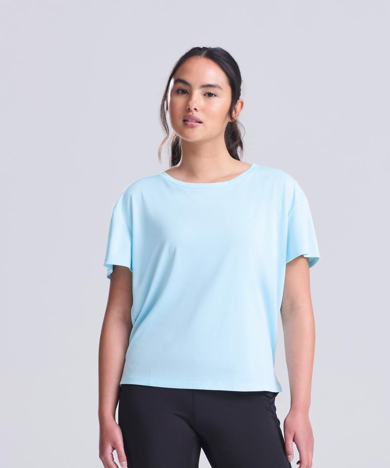 Specification - AWDis own lightweight Neoteric textured fabric with inherent wickability. Relaxed fit. Open back design feature. Set-in sleeve design. Self-fabric crew neck. Self-fabric taped back neck. Twin-needle stitching detail. Simple tear-off label makes it perfect for rebranding. UPF 30+ UV protection..