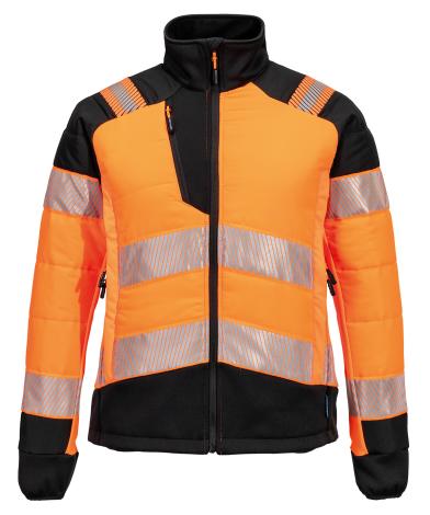 Womens PW3 Hi-vis Hybrid Baffle Jacket (T171) In Orange/Black