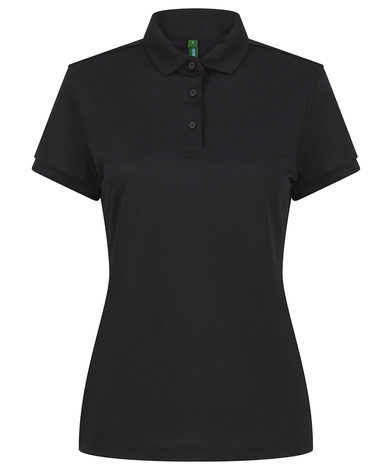 Specification - Polo shirt made from recycled polyester yarn with wicking properties. Regular fit with three-button placket. Henbury stand-up collar. 1x1 ribbed collar and cuffs. Dyed-to-match buttons. Female fit with shaped side seams. Henbury cut-out label for easy rebranding. Biodegradable plastic bag packaging. Certified OEKO-TEX, BSCI..