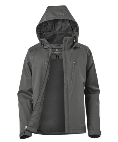 Specification - Stormtech 2-layer H2XTREME 10000/10000 Waterproof/breathable outer shell. PFC-free durable water-repellent finish. Fully seam-sealed. Roll-away hood with adjustable drawcord. Brushed tricot-lined collar. Waterproof centre-front zip. Waterproof zipped chest pockets. Waterproof zipped hand pockets with brushed tricot. Articulated sleeves. Adjustable cuffs and hem. Mesh-lined back vent. Contoured seaming. 100% recycled polyester..